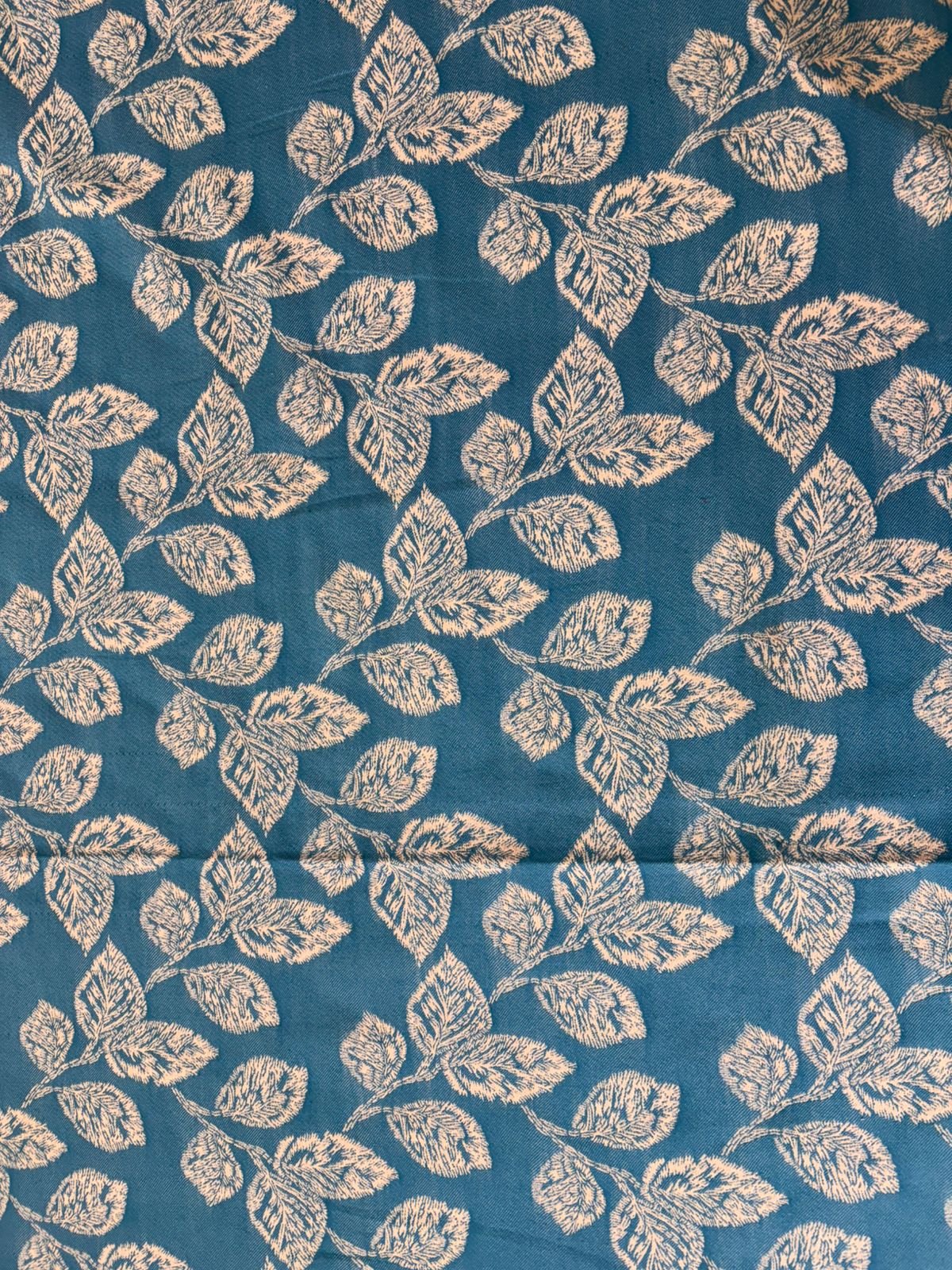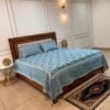 Refresh your bedroom with the calm elegance of this blue bedcover, adorned with delicate handblock-inspired leaf motifs in soft white tones. The soothing blue base creates a serene atmosphere, while the coordinated border and matching pillow covers add a refined, cohesive look.