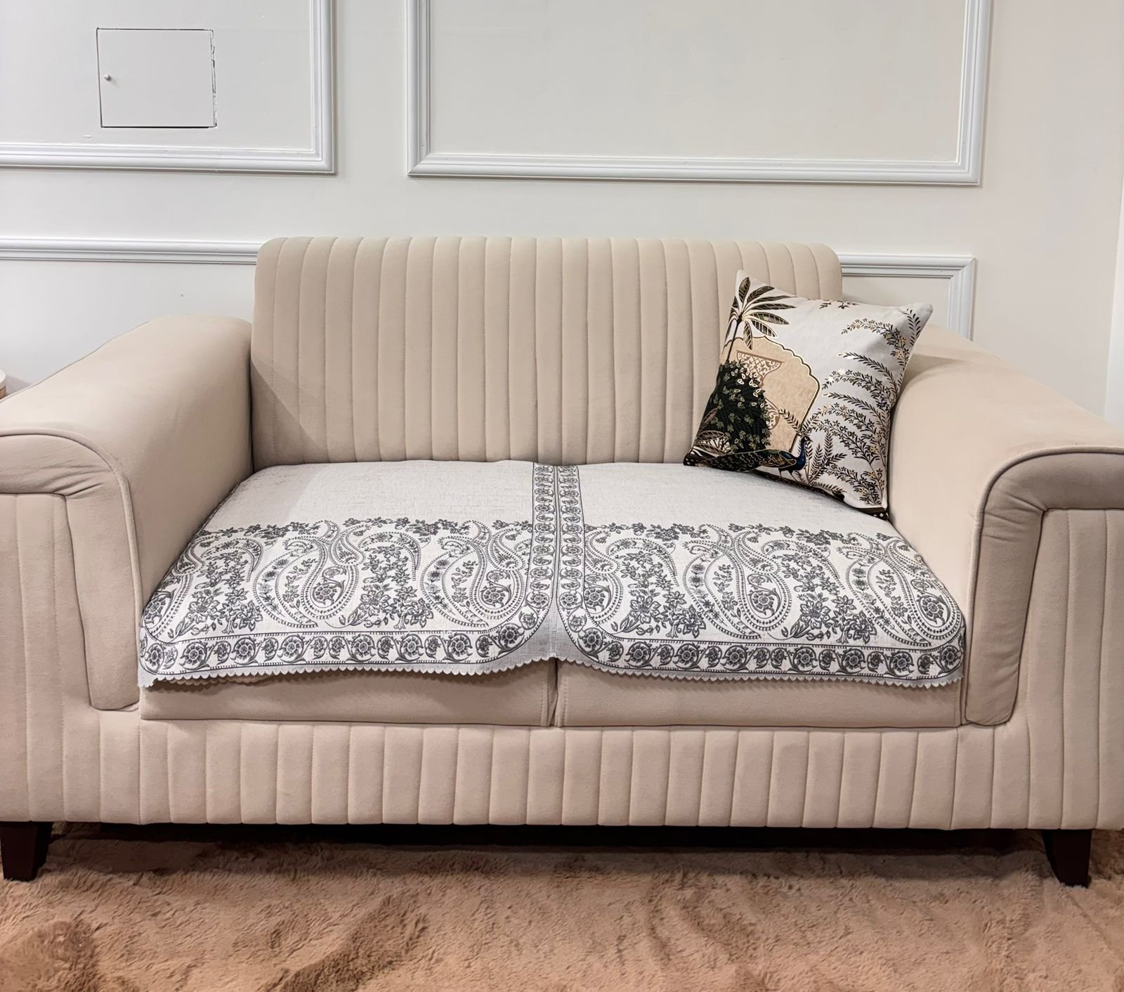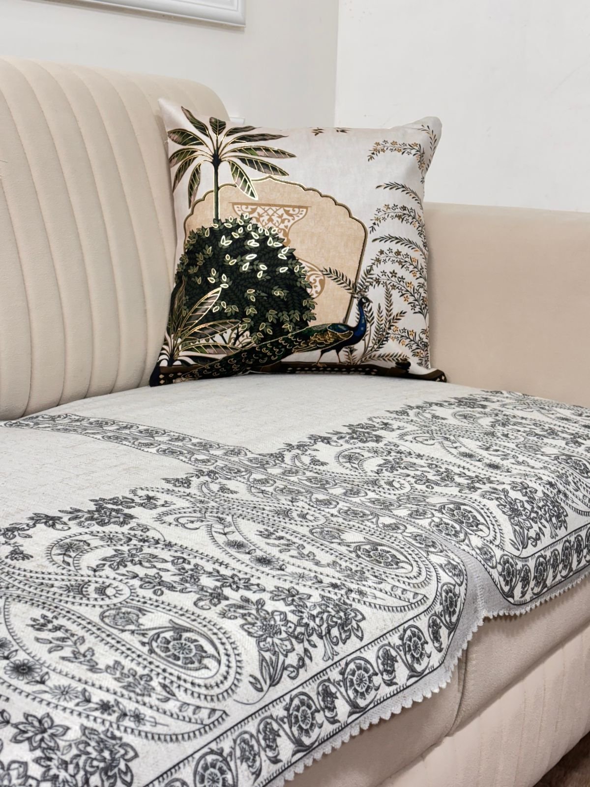 Enhance your sofa with this beautifully crafted black paisley sofa cover that blends classic design with modern elegance. The intricate paisley and floral artwork in deep black tones over a soft neutral base creates a striking contrast, giving your living space a refined and sophisticated look.