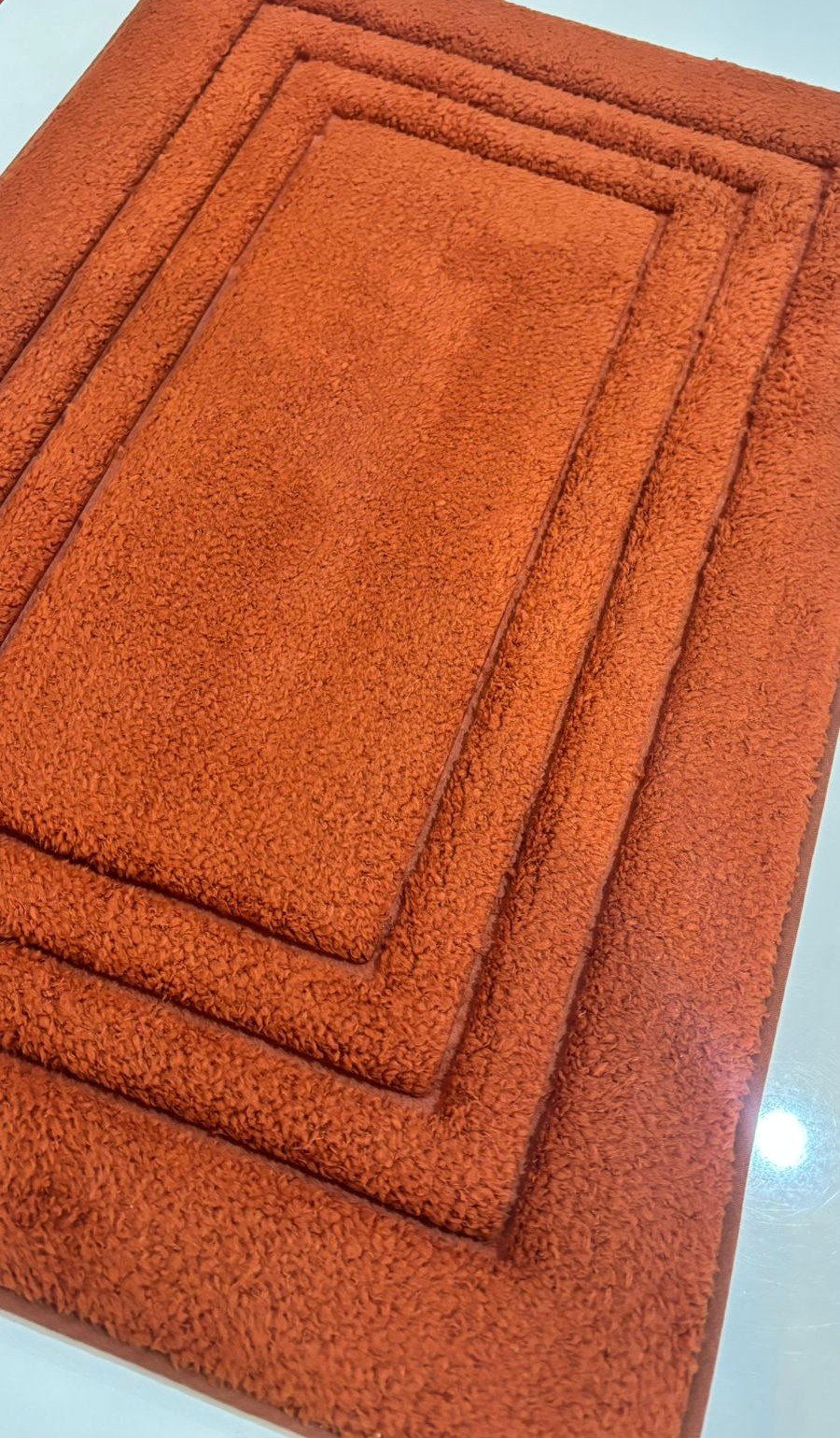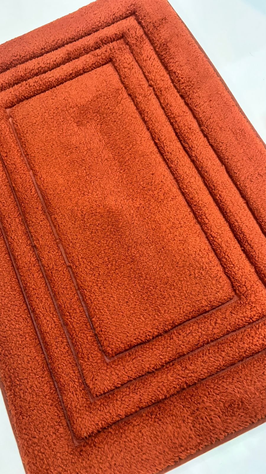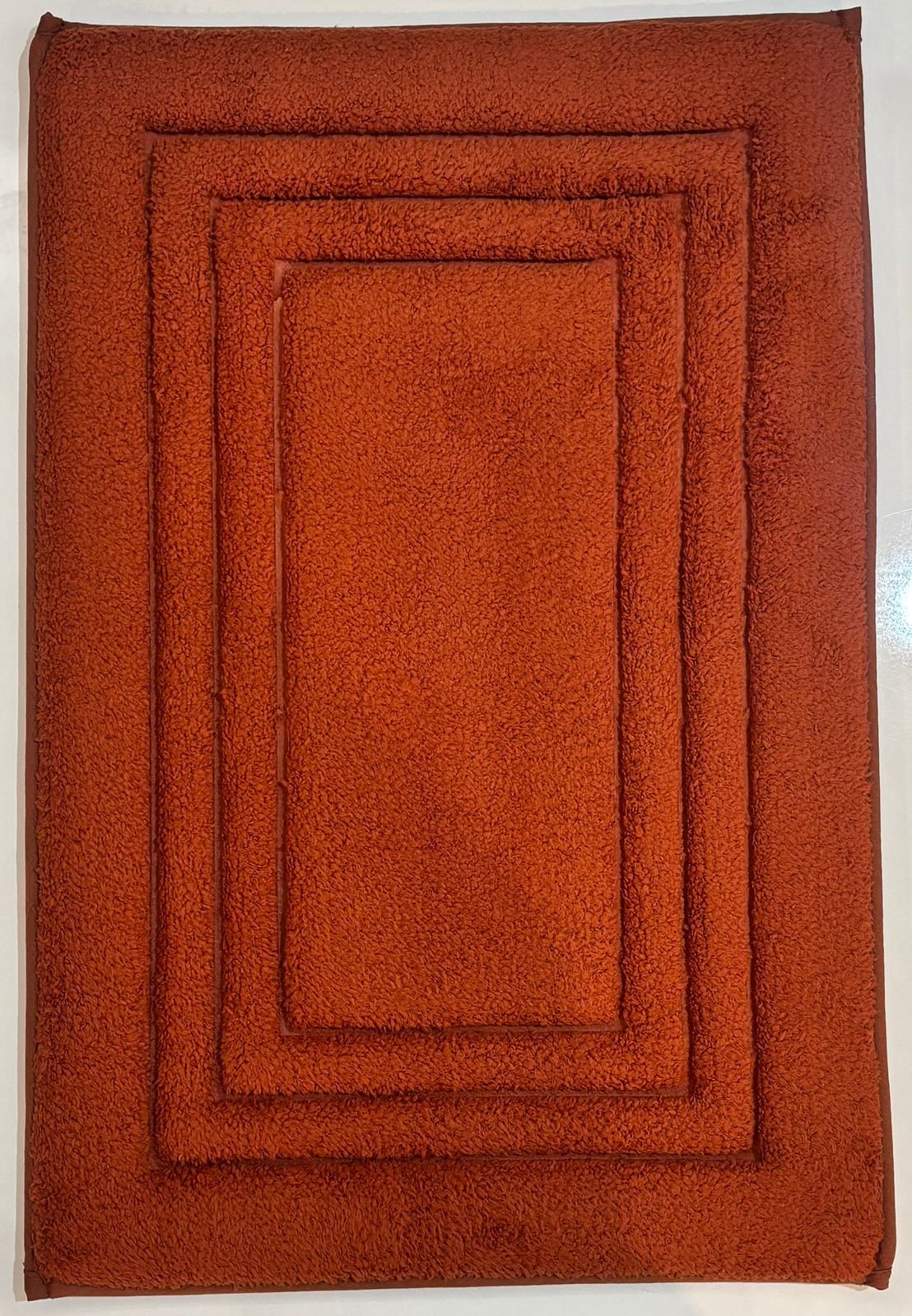 Add depth and warmth to your living space with this elegant rust-colored floor mat. Featuring a layered rectangular frame design, it brings a clean, classic look that suits both modern and traditional interiors. The rich rust shade creates a cozy, earthy feel while subtly enhancing your décor.