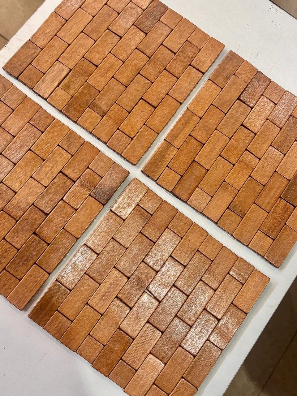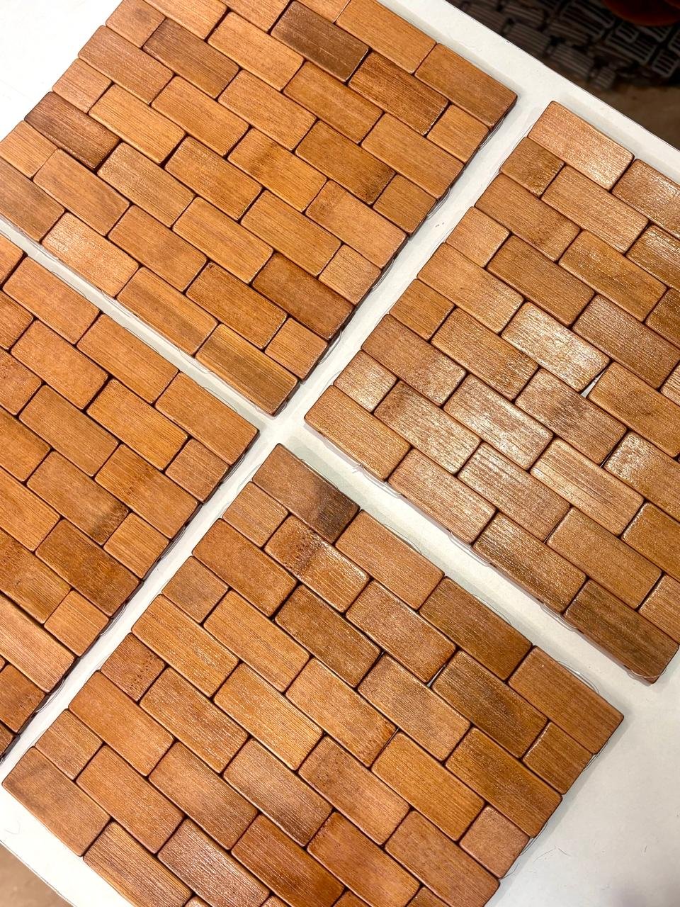 Classic Square Wooden Table Mat – Brick Pattern Design
