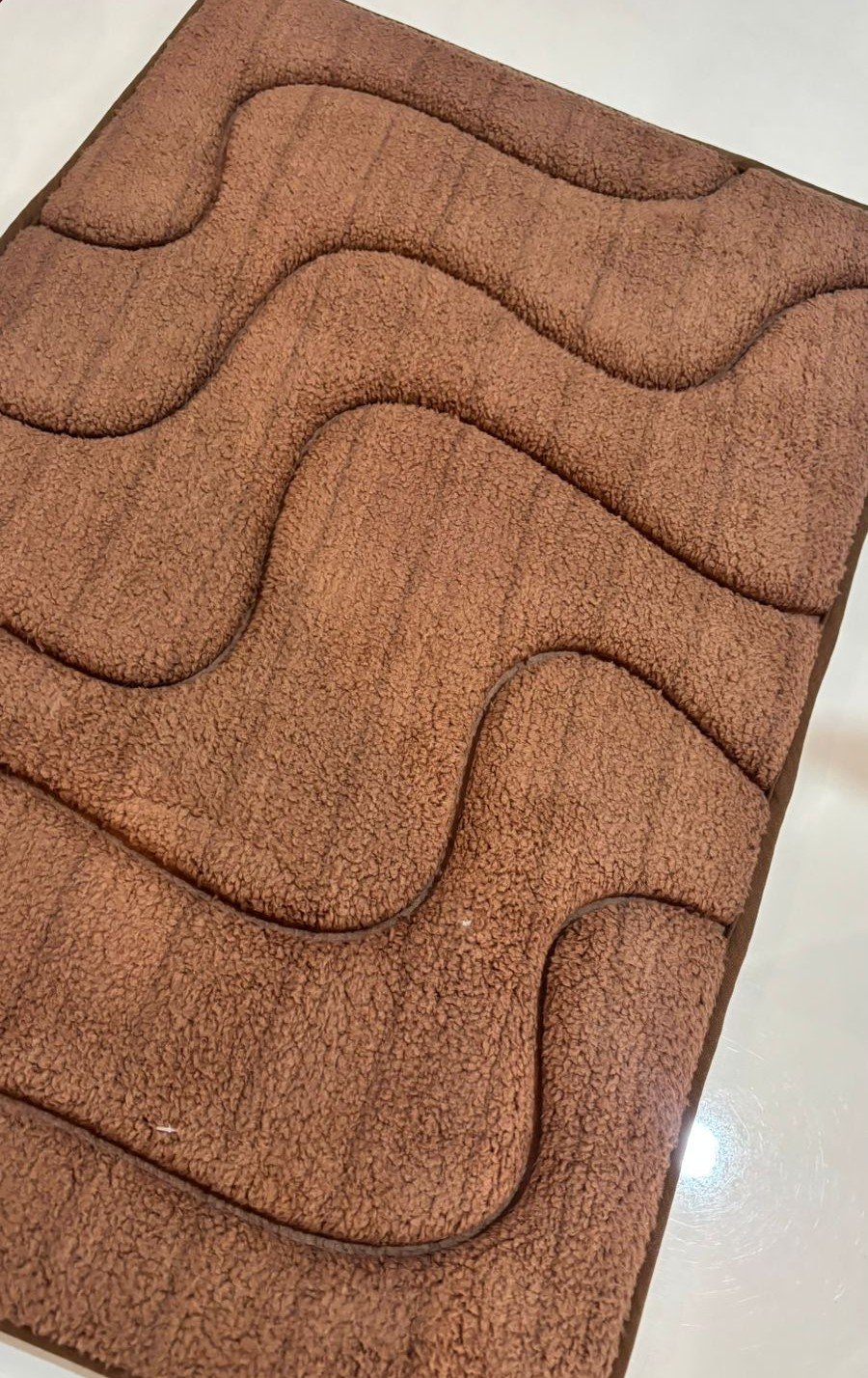 Add warmth and comfort to your living space with this cocoa brown floor mat, crafted with a flowing wave-inspired texture for a modern look. The soft, plush surface feels gentle underfoot while helping absorb dust and moisture, making it ideal for bedrooms, living rooms, and entryways. Its rich brown colour blends easily with most interiors, adding a cozy and welcoming feel.