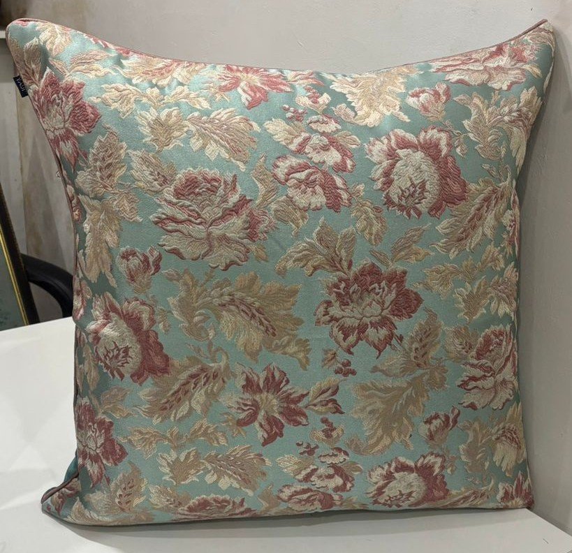 Add a touch of timeless charm to your interiors with this beautifully designed cushion cover featuring an all-over vintage floral pattern. Set against a soothing pastel aqua base, the intricate floral motifs in muted rose and beige tones create a graceful, elegant look. The classic design brings warmth and softness, making it a perfect accent for sofas, beds, or cozy seating areas.