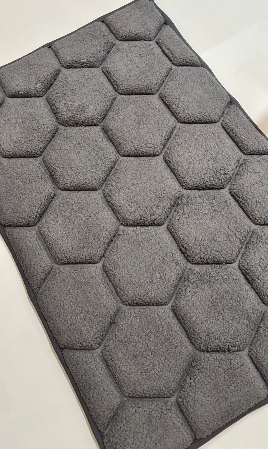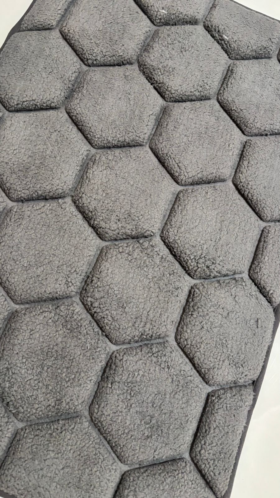 Bring a modern, minimal look to your home with this elegant grey floor mat featuring a refined hexagon texture. The soft, plush surface offers comfortable cushioning underfoot while effectively trapping dust and moisture to keep floors clean.