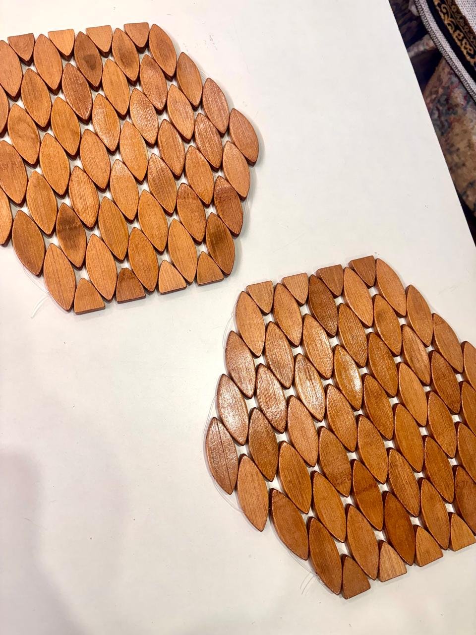 Elegant Hexagon Wooden Table Mat – Leaf Pattern Design