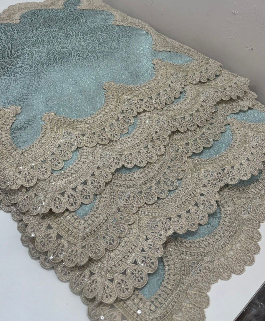 Be the first to review “Elegant Pastel Aqua Cushion Cover with Lace Border”