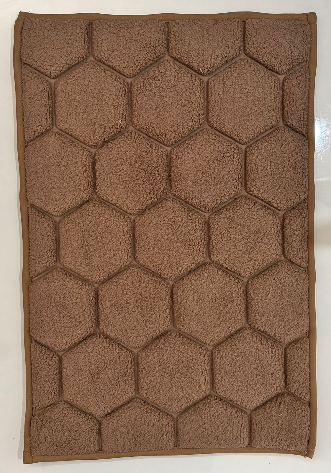 crafted with a plush microfiber fabric, this floor mat features a distinctive honeycomb pattern that adds texture and visual depth to any space. the cushioned surface feels soft underfoot while helping to absorb dust and moisture, making it ideal for bedrooms, living areas, or beside the bed.