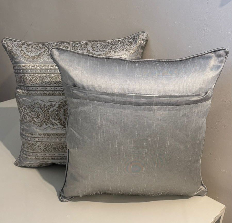 Be the first to review “Luxurious Silver Brocade Cushion Cover with Royal Elegance”