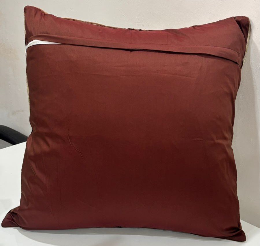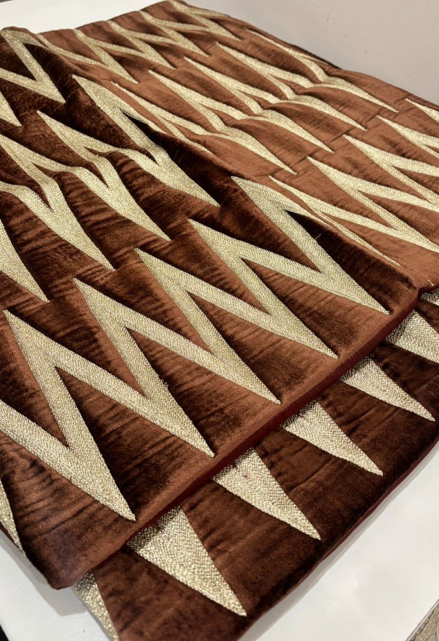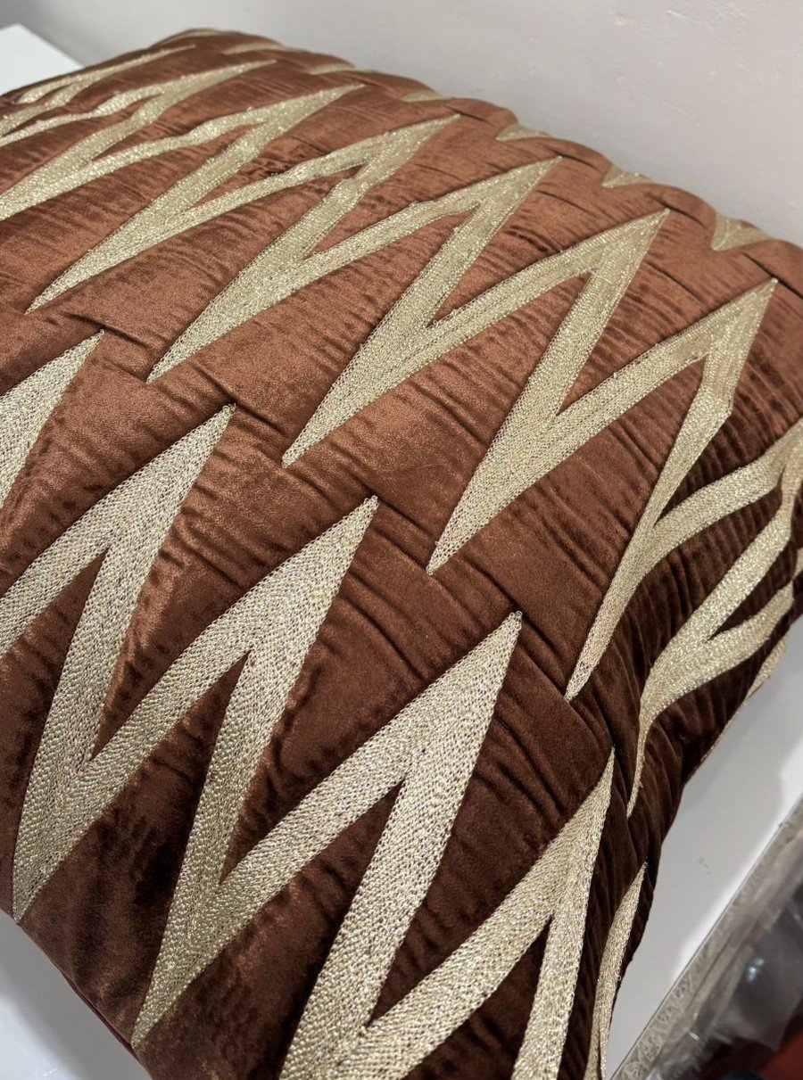 Enhance your living space with this sophisticated brown velvet cushion cover, designed to add warmth and richness to your décor. The deep brown velvet base is beautifully accented with elegant gold zigzag embroidery, creating a striking contrast and a refined, contemporary look.