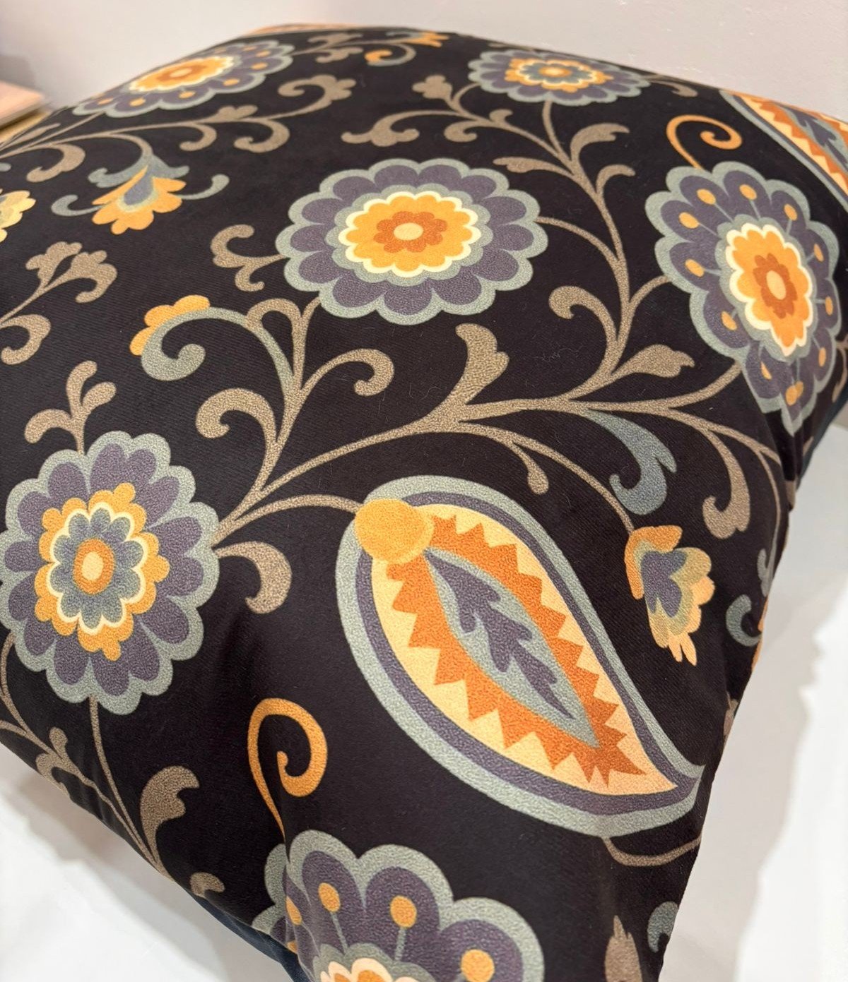 Add a touch of dramatic mystery to your home with our Midnight Ebony & Gold Cushion Cover. This statement piece features a deep black backdrop that allows the intricate, flowing botanical patterns to truly shine, creating a look of modern luxury with a traditional soul.