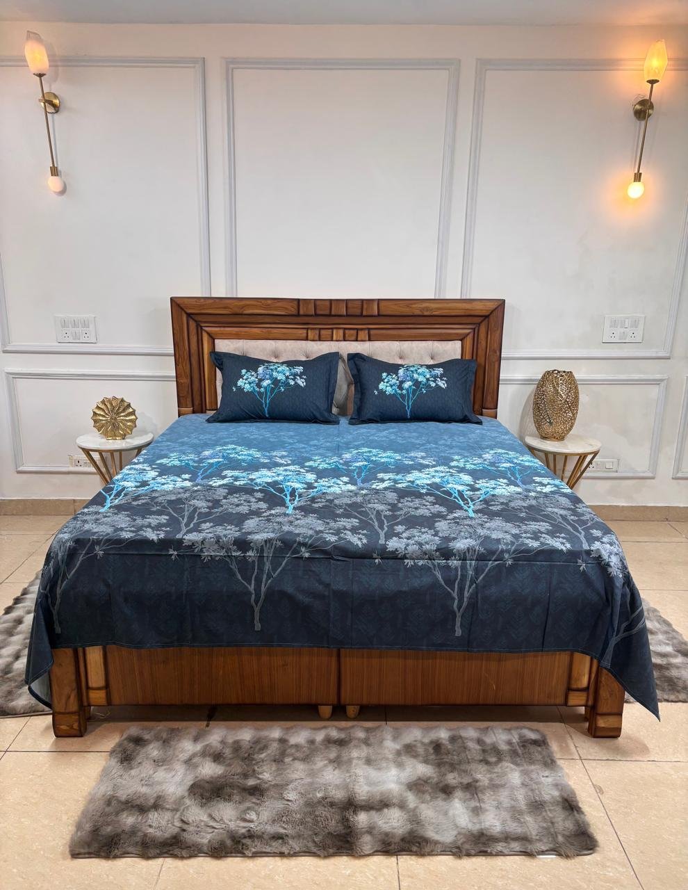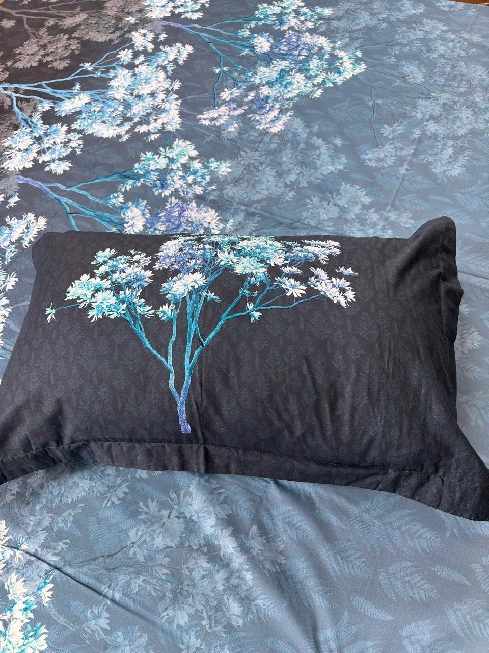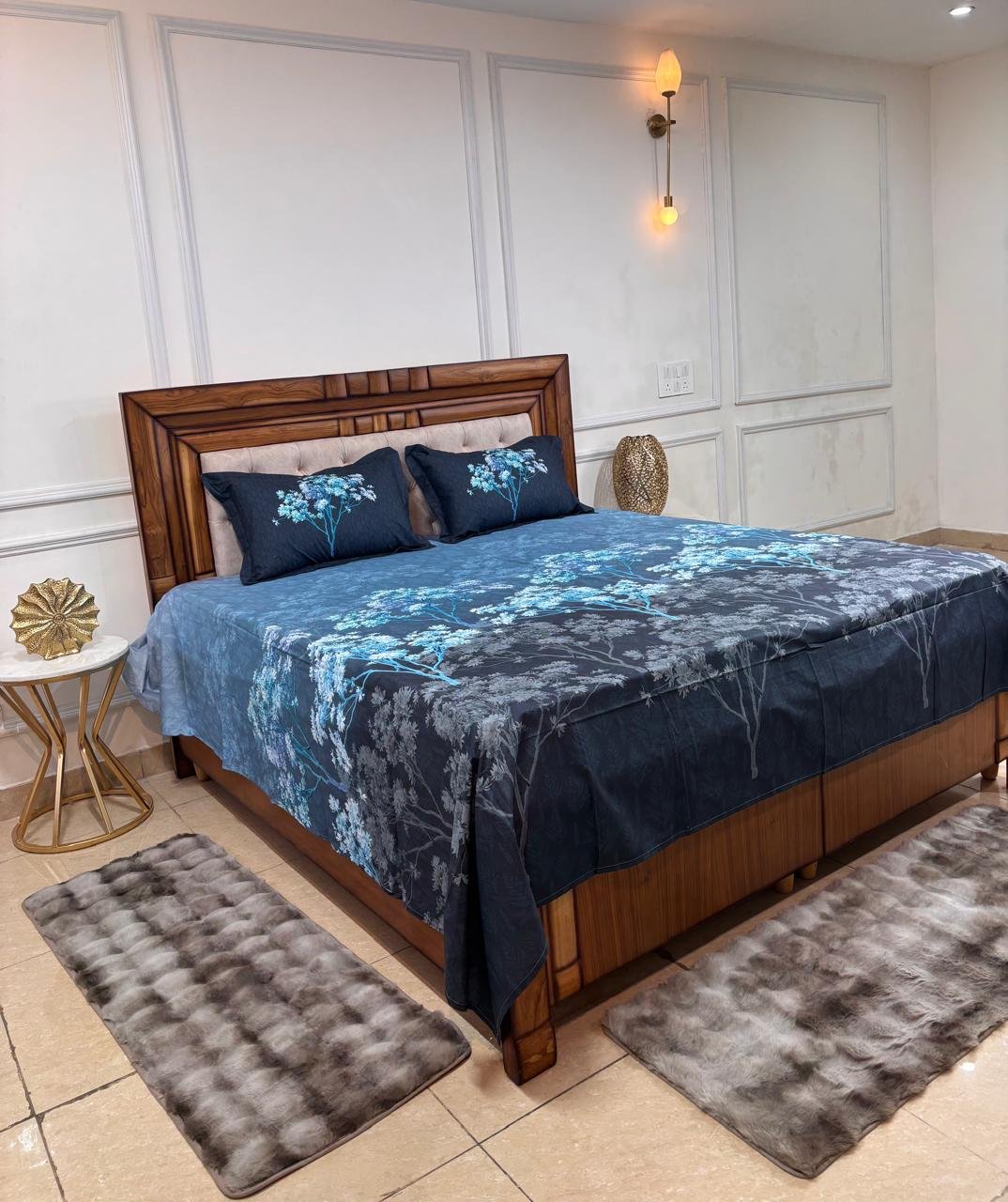 Transform your bedroom into a serene woodland sanctuary with our Midnight Forest Ombré Bedsheet. This striking design features a sophisticated color transition and intricate botanical silhouettes, perfect for creating a moody yet modern atmosphere.