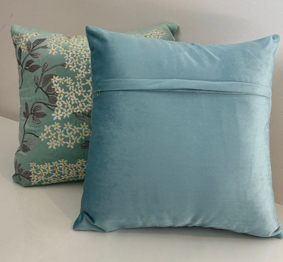 Be the first to review “Mint Garden Bloom – Hand-Embroidered Floral Cushion Cover”