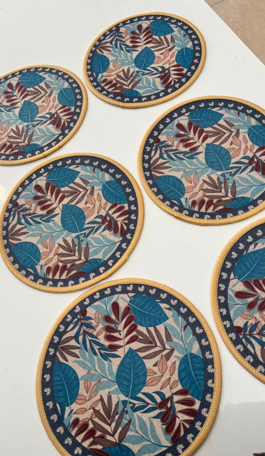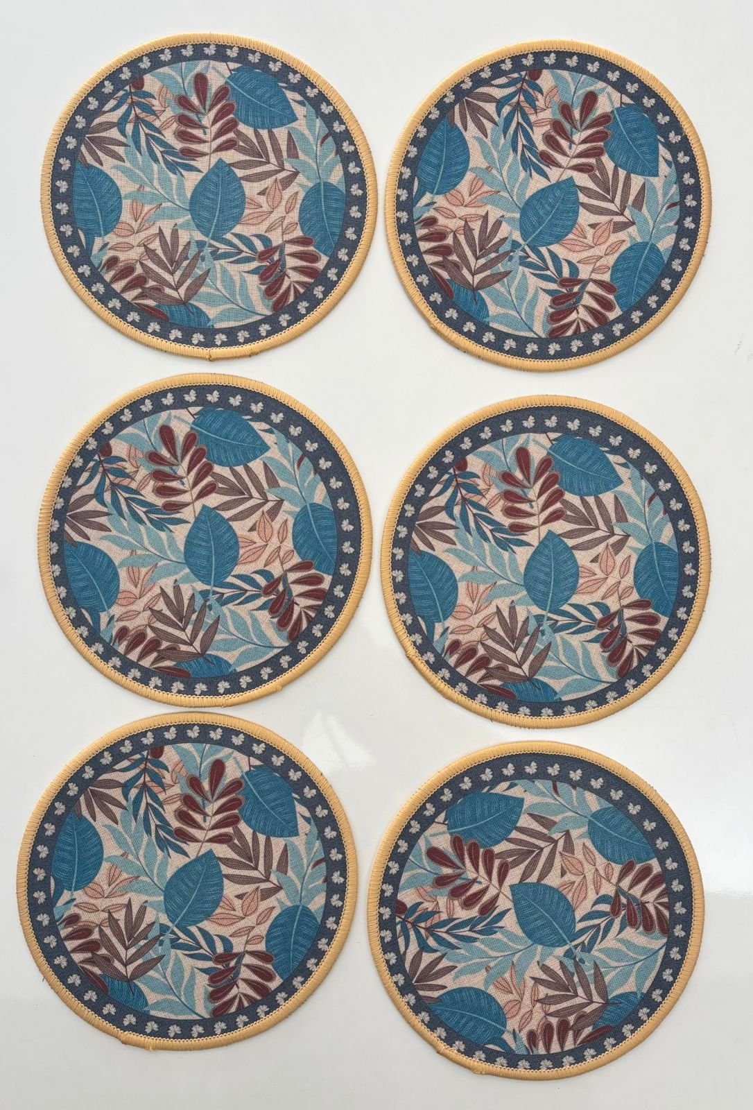 Enhance your dining experience with this finely crafted round fabric table mat, designed to bring a natural and refreshing look to your table setting. The soft leaf-inspired print adds a calm, contemporary feel, while the solid reverse side offers a neat and minimal alternative.