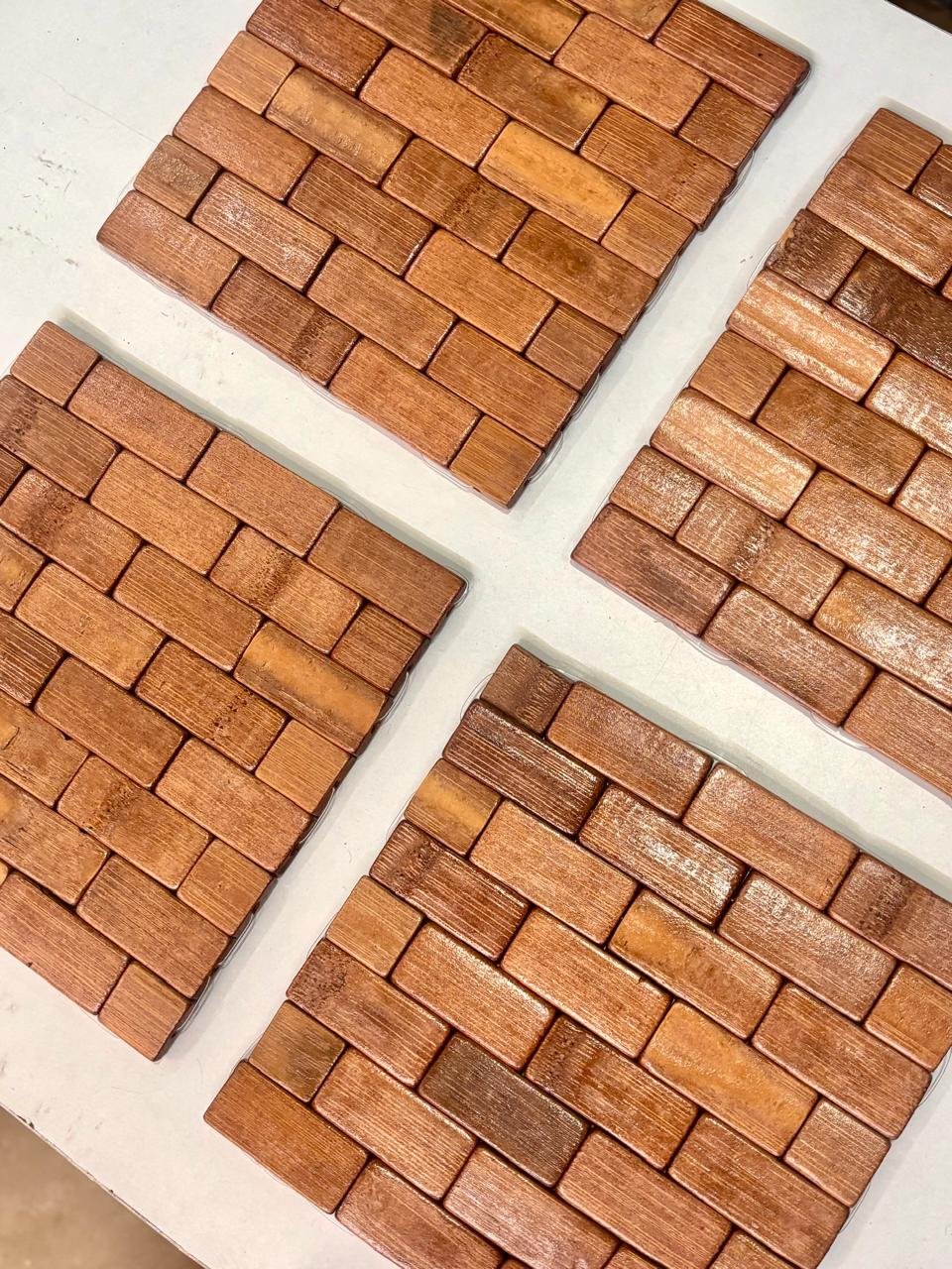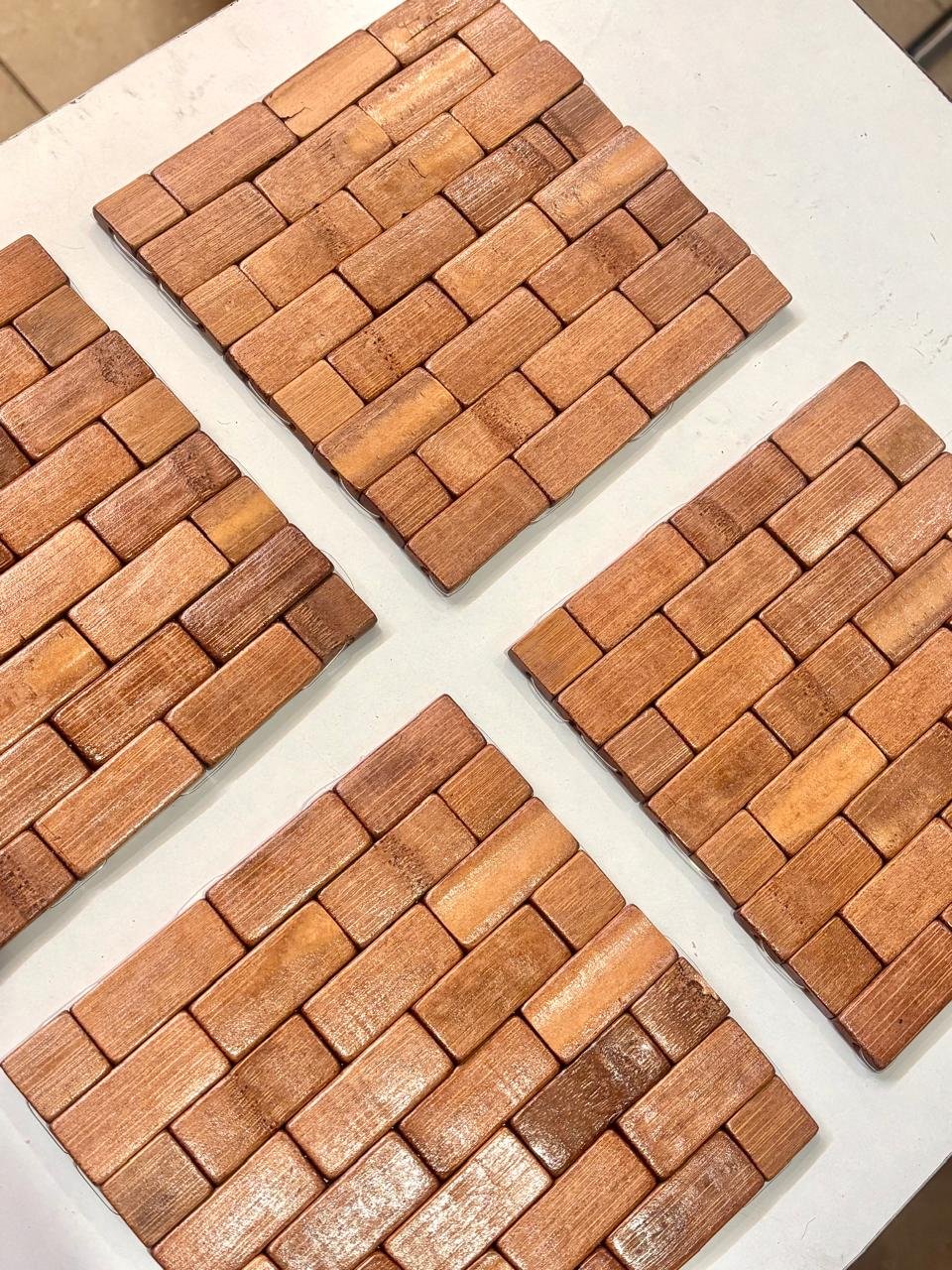 Transform your dining presentation with this uniquely designed wooden mosaic table mat crafted in a striking block layout. The carefully aligned rectangular wooden pieces create a modern tiled effect that adds depth, character, and natural warmth to your table décor.