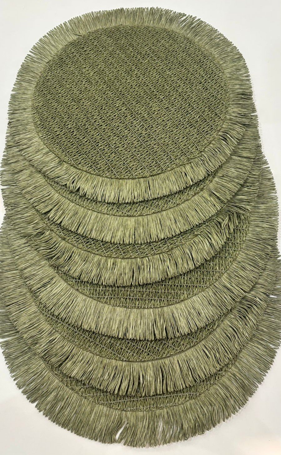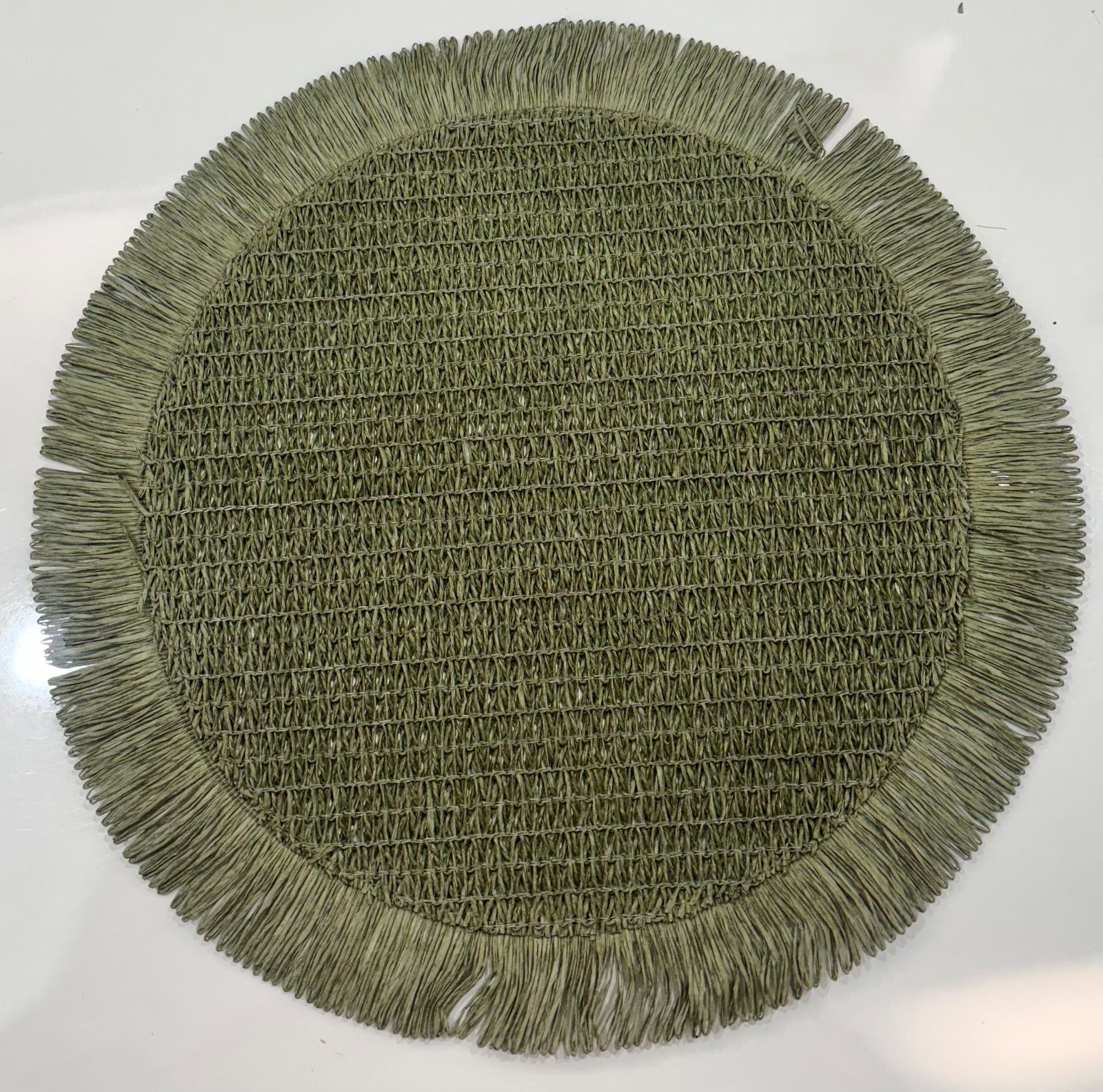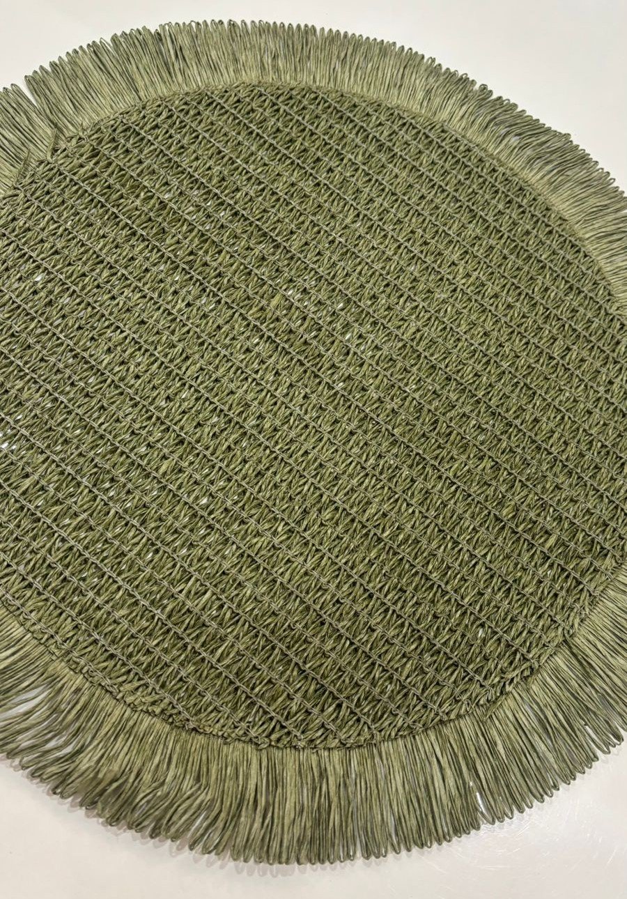 Bring an organic, earthy feel to your tabletop with this sage green circular placemat. Designed to evoke the calmness of nature, this mat features a soft mossy tone that blends seamlessly with rustic or botanical-themed decor.