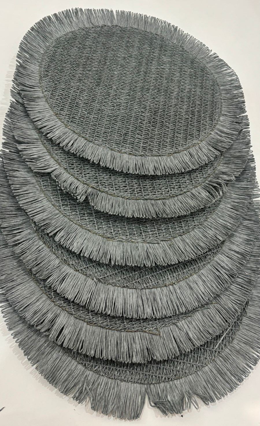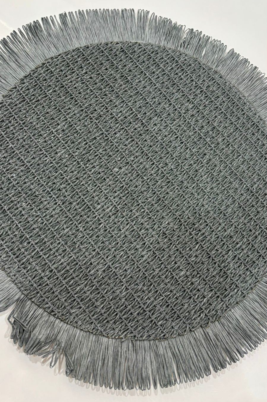 Add a touch of contemporary elegance to your table with this slate grey circular placemat. Combining a refined color with a relaxed, textured design, this mat is an ideal choice for those who want a modern take on bohemian style.