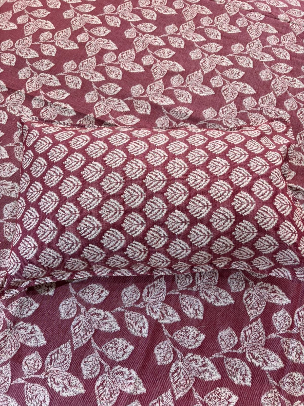 The Berry Bloom: Intricate Leaf Motif Quilted Bedcover Set